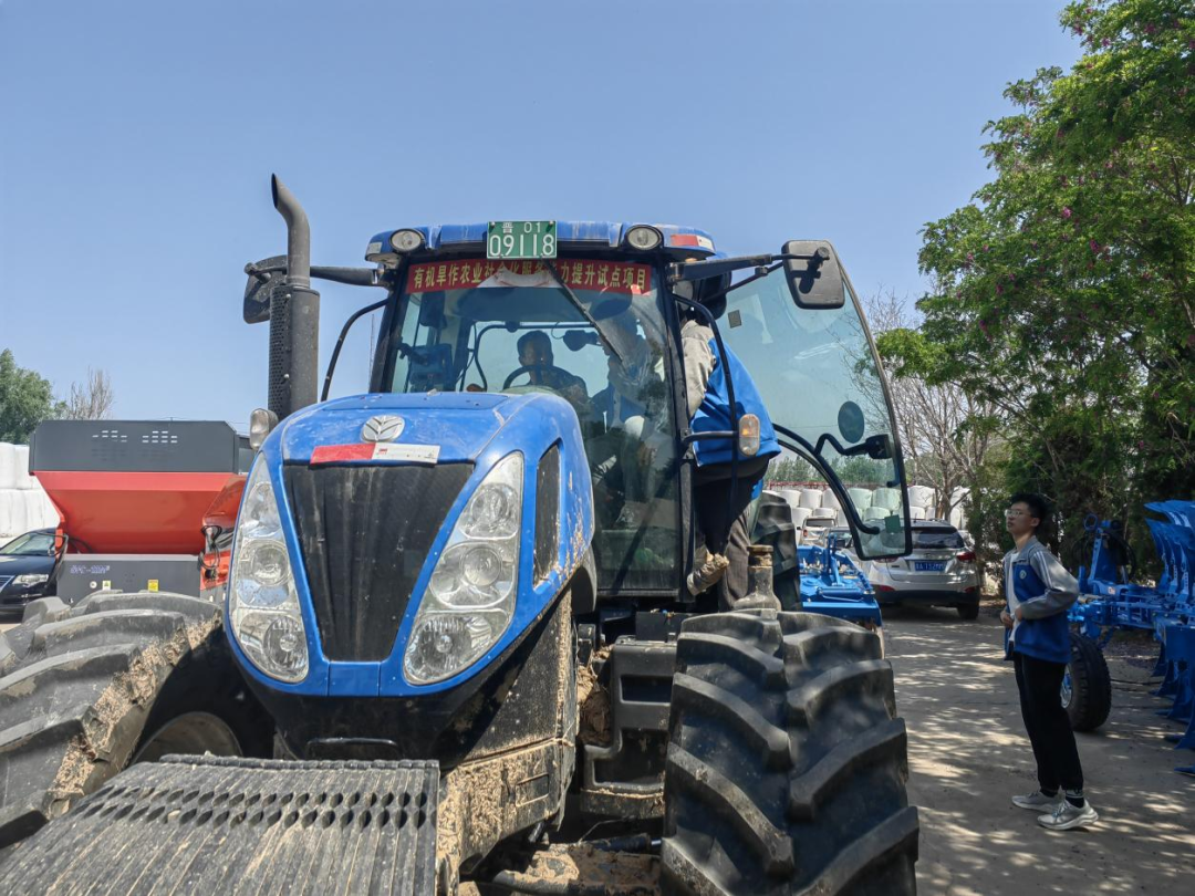 闫晋林经理介绍了公司的主营业务,对先进设备的主要功能特点进行了详细讲解,随后闫兴亮技术员指导学生体验纽荷兰2304拖拉机辅助驾驶功能。