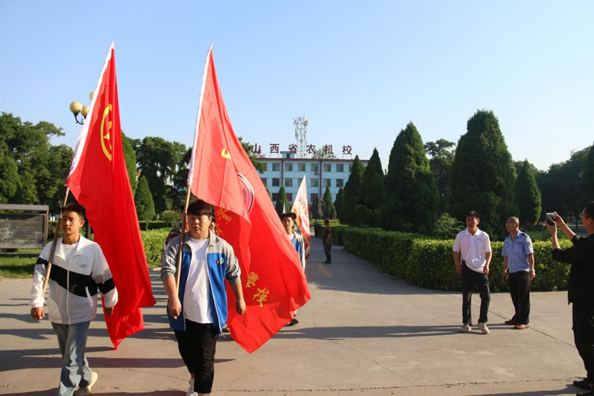 早7时许,学生整装出发。校旗、团旗迎风招展,鲜红的旗帜和朝阳交相辉映。近一个半小时的徒步志愿行,同学们兴致高昂,精神饱满,队伍整齐有序,展现了农机校学子良好的精神面貌。一路上,大家将路上遇到的垃圾袋、空水瓶自觉地捡到垃圾袋中,用实际行动践行绿色环保理念。