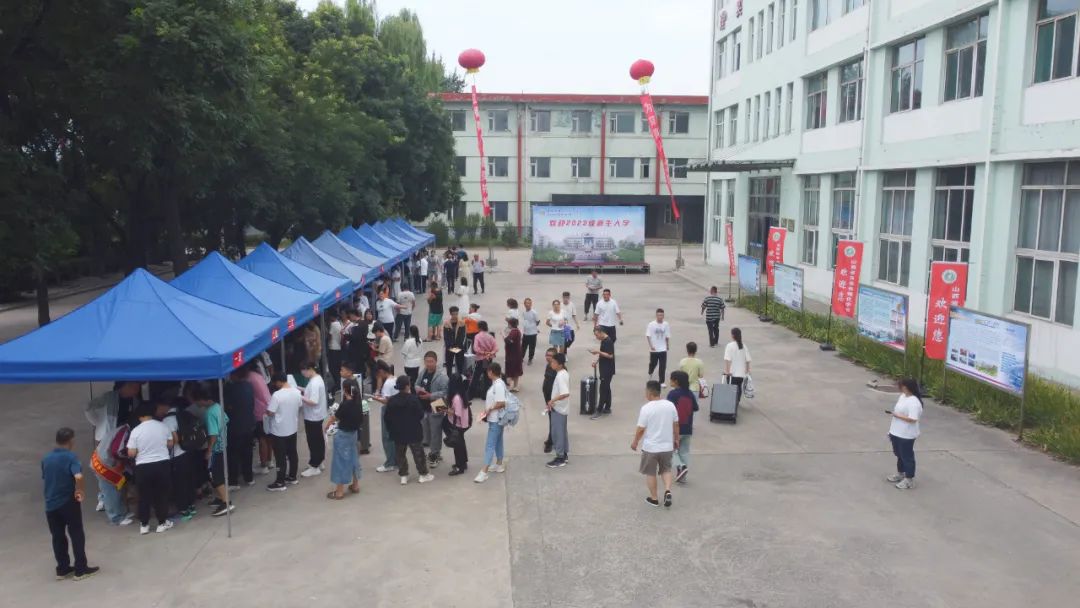 8月20日,农机校校园内红旗招展,条幅飘扬,一排排兰色的伞篷勾勒出迎新的最美风景线,伞篷前,人头攒动,络绎不绝,2023级新生满怀对新生活的憧憬和希望来校报到,同学们踏上农机校这片沃土,步入中职学习生涯,将在这里放飞梦想,开启崭新征程。